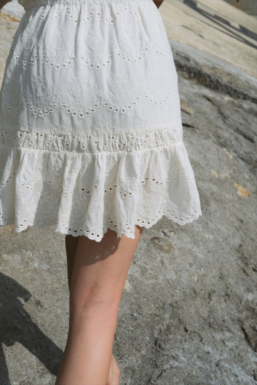 選用有厚度的蕾絲在裙擺做抓皺設計