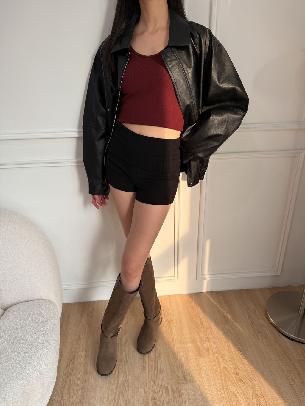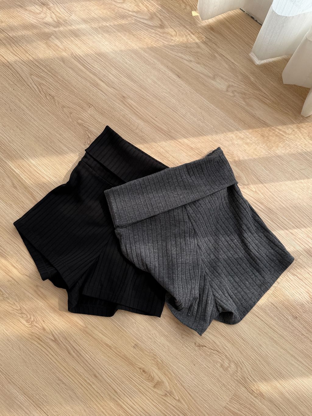 長腿姐姐坑條短褲-黑