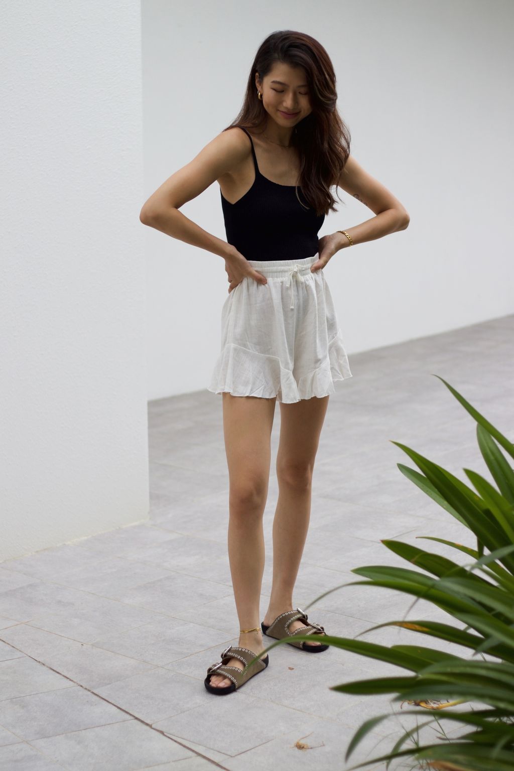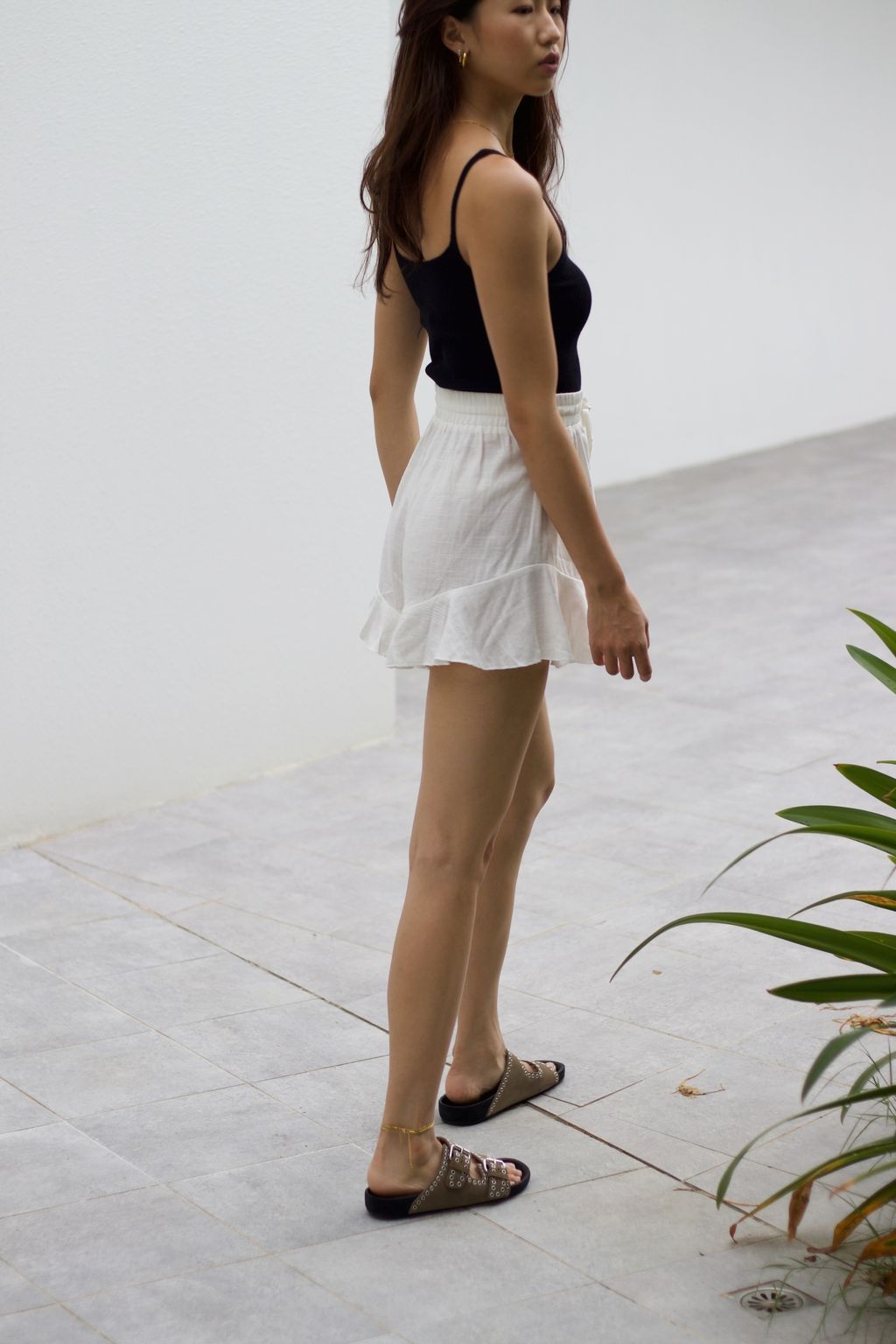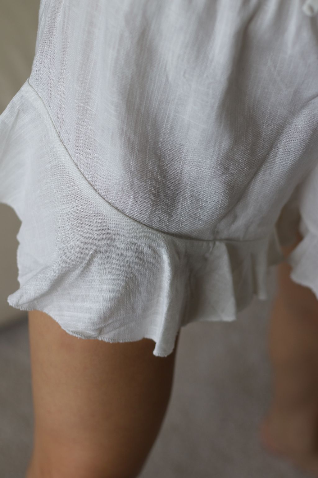 請注意:布料為白色薄棉麻,建議穿著膚色內褲。