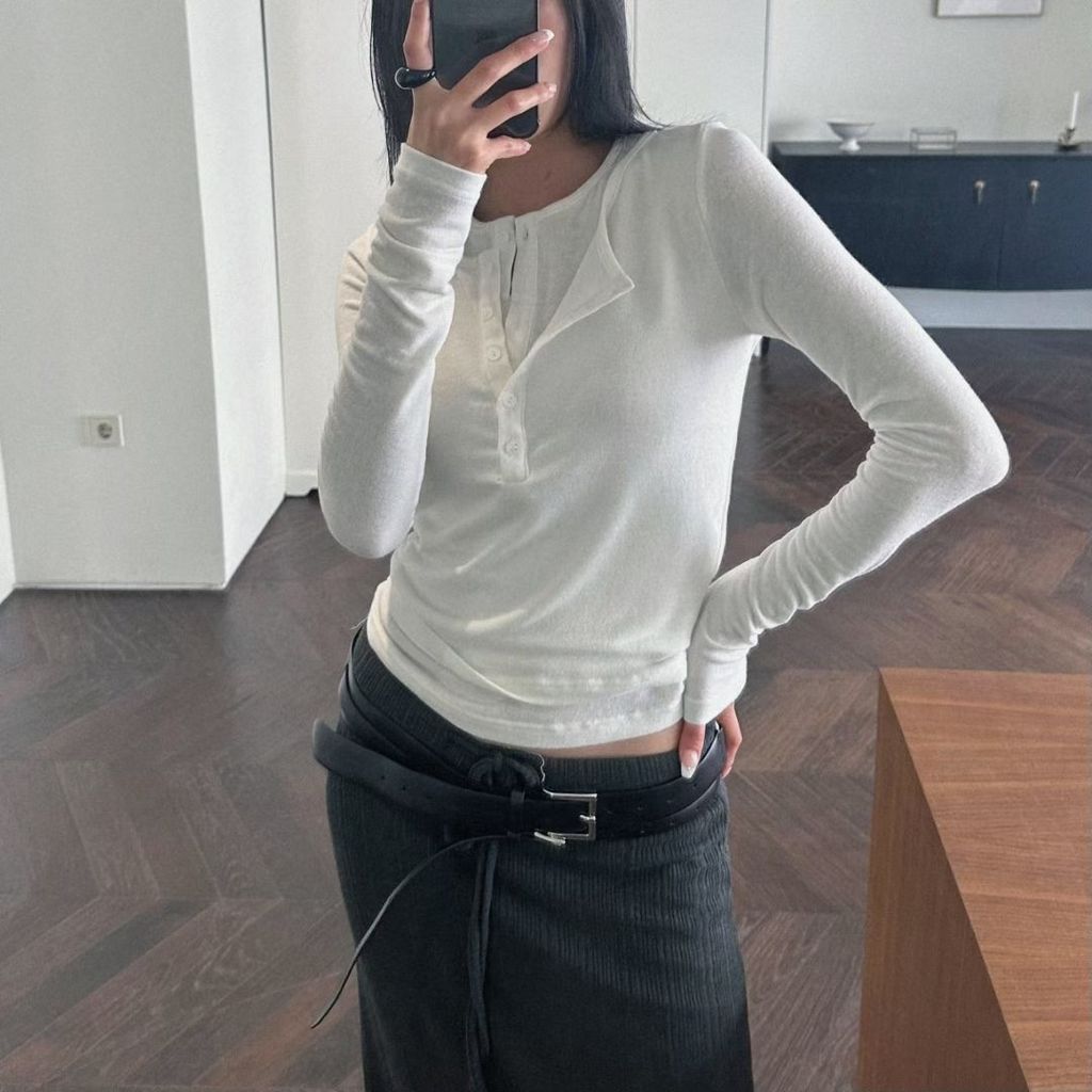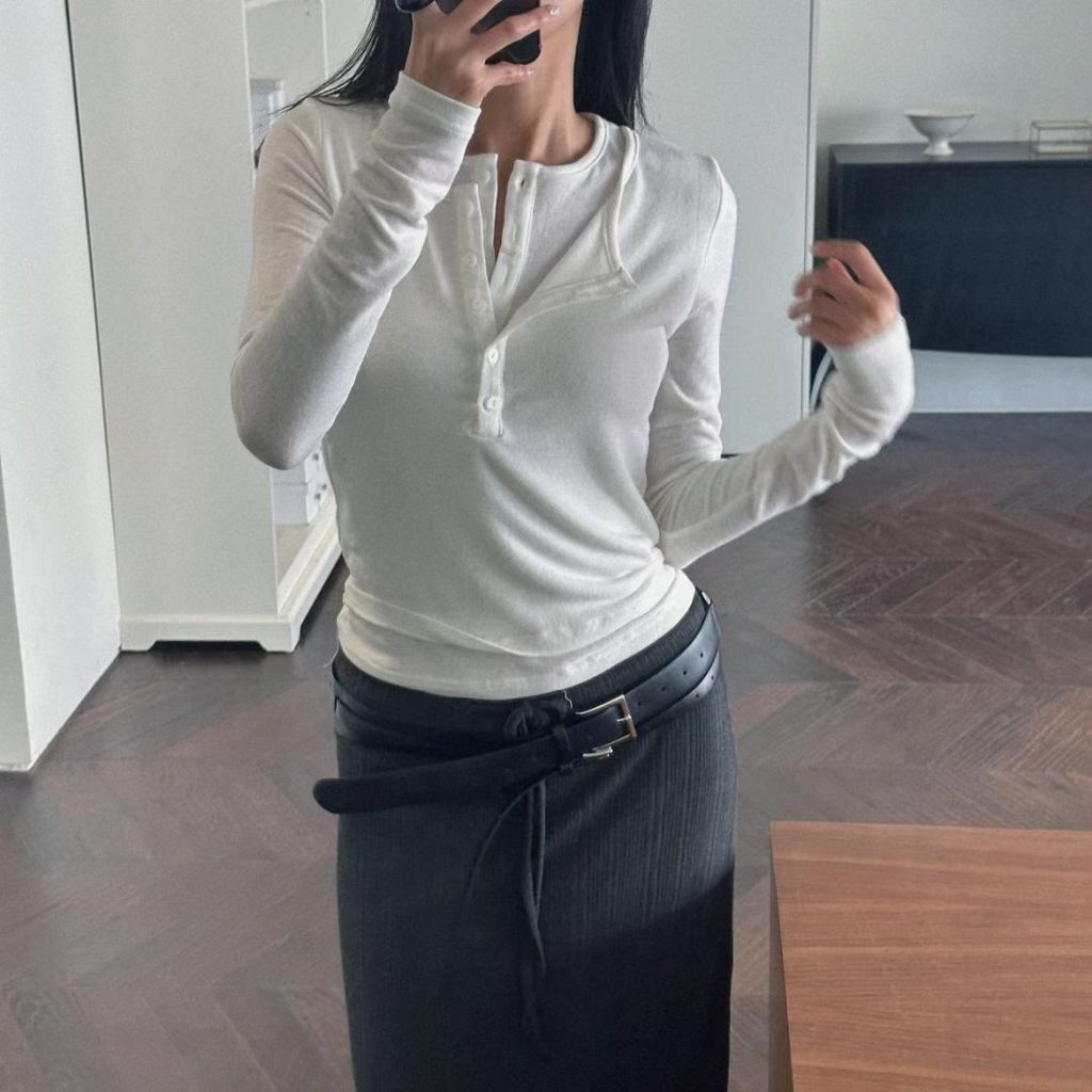 層次感親膚排釦上衣-白
